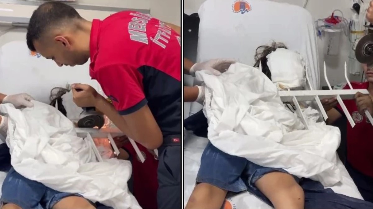 Yaralı çocuk olay yerine giden Mersin Büyükşehir Belediyesi'ne bağlı itfaiye ekiplerinin kestiği demir ile birlikte Mersin Üniversitesi Tıp Fakültesi Hastanesi'ne kaldırıldı. Çocuğun çene kısmından giren demir, ameliyata alınması amacıyla doktor gözetiminde alt kısmından kesildi.
