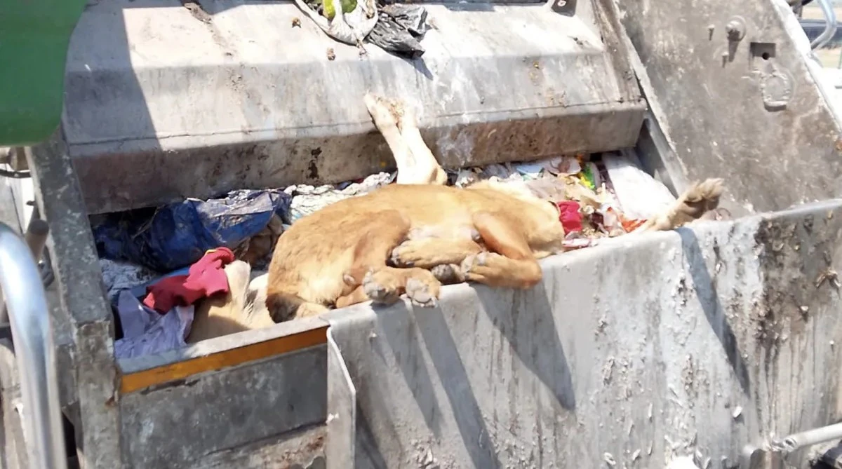 ÖLÜ KÖPEKLERİ ÇÖP ARACINA ATTILAR