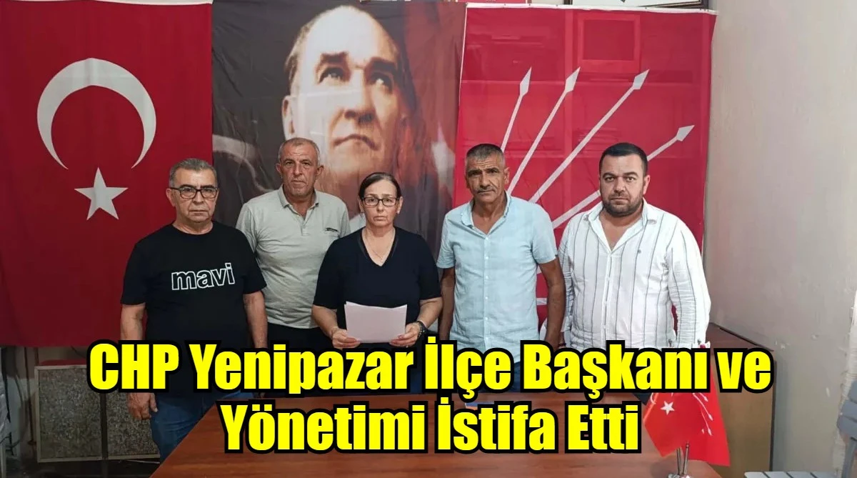 CHP Yenipazar ilçe Başkanı Sergül Duransoy ve yönetim kurulu üyeleri İrfan Gemicioğlu, Akın Tosun, Hüseyin Çelik, Serdar Gümüş, Ulaş Aksoy, Hüsamettin Evci ve Yıldız Ercim, görevlerinden istifa etti.