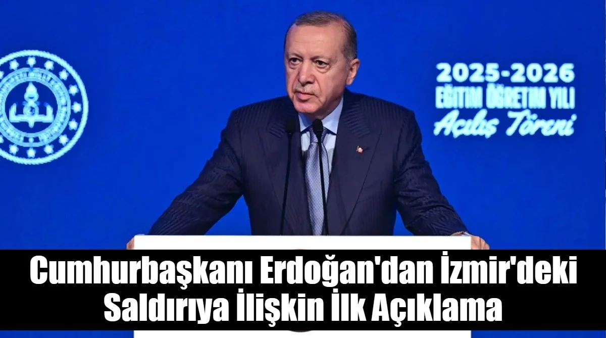 2025-2026 Eğitim Öğretim Yılı Açılış Töreni'nde İzmir'deki saldırıya ilişkin değerlendirmelerde bulunan Cumhurbaşkanı Erdoğan, olayın tüm bağlantılarıyla araştırıldığını kaydetti. Erdoğan, "Şehit olan polislerimize Allah'tan rahmet, yaralı polislerimize şifalar diliyorum" dedi.