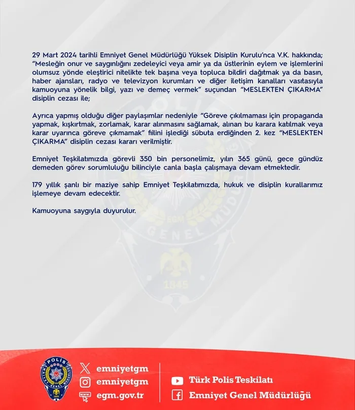 Siber Suçlarla Mücadele Şubesi ekiplerince başlatılan çalışmalar neticesinde, hesabın kullanıcısının Trabzon Emniyet Müdürlüğü Koruma Şube Müdürlüğünde görevli polis memuru V.K. olduğunun tespit edildiği bilgisine yer verilen açıklamada, şunlar kaydedildi: