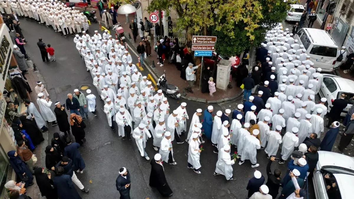 "İcazet" etkinliği için cemaat üyeleri İsmailağa Camii'nden Yavuz Sultan Selim Camii'ne yürüdü.