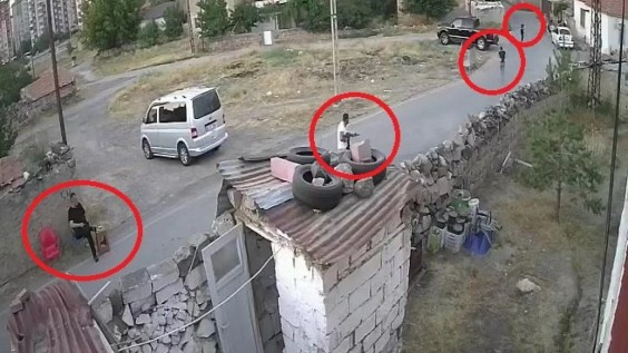 Mustafa Işık'ın, tüfeği sokağın diğer tarafına çevirip, kendisine müdahale etmek isteyen başka komşusuna doğrultarak ateş ettiği, ardından evin avlusuna girdiği, 2 farklı tüfeği kanepenin altında sakladığı, daha sonra da 2 tüfeği alarak hızla evinin merdivenlerinin çıktığı anlar kaydedildi.