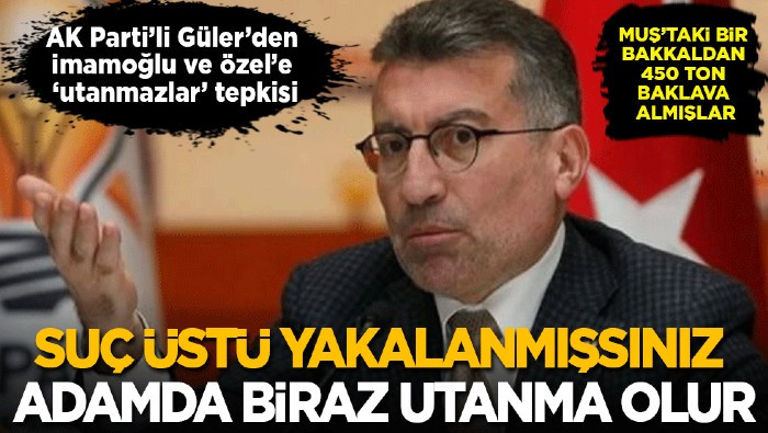 AK Parti TBMM Grup Başkanı Abdullah Güler, İstanbul Büyükşehir Belediyesine yönelik yolsuzluk soruşturmasına ilişkin yaptığı açıklamada, Muş’taki bir bakkaldan İstanbul’a 450 ton baklava alındığını, para ödemesi ve faturasının olduğunu belirterek " Suçüstü yakalanmışsınız. Adamda biraz utanma olur, biraz ar duyar, yüzü kızarır. Bir de gençleri sokağa davet edin, ateşe verin, polise saldırın. Yazıklar olsun” tepkisini gösterdi.