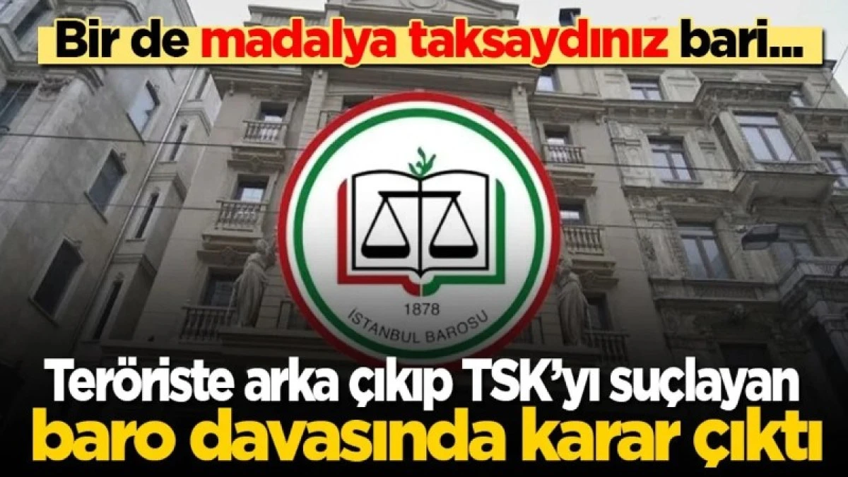 Suriye’deki PKK operasyonunda çıkan çatışmada öldürülen teröristleri gazeteci gibi gösterip TSK'yı suçlayan İstanbul Barosu Başkanı İbrahim Kaboğlu ve yönetim kurulu üyeleri hakkında 12'şer yıl hapis istemiyle açılan "terör davasında" beraat kararı verildi. Kamuoyunda vicdanları yaralayan karar için 'madalya da taksaydınız bari' tepkileri yükseldi.