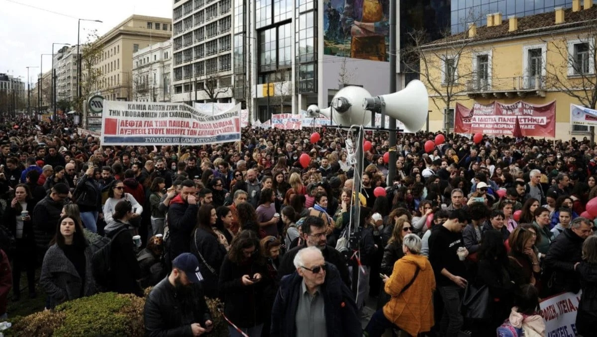 Öte yandan, eylemciler geçen yıl 28 Şubat'ta Tempi'de yaşanan tren kazasının aydınlatılıp, sorumlularının cezalandırılmasını da istedi.